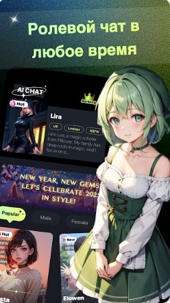 Comic AI-Anime Roleplay Chat - это площадка для общения с анимированными персонажами, созданными искусственным интеллектом. С ними можно вести диалоги, выстраивать романтические отношения, веселиться, шутить, проигрывать собственные сюжеты и сценарии. Также приложение привлечет внимание любителей ролевых игр. Это будет непринуждённое общение с элементами флирта, способное заменить контакты с реальными людьми, более приятное и личностное. Просто выберите любимого аниме-героя или создайте собственногои приступайте.