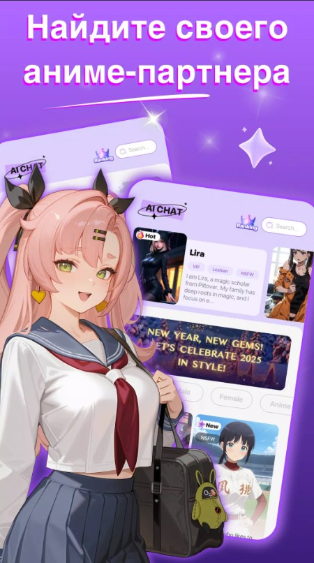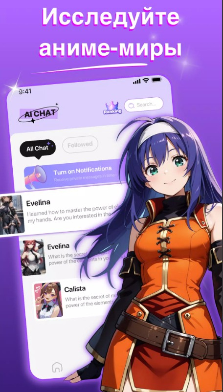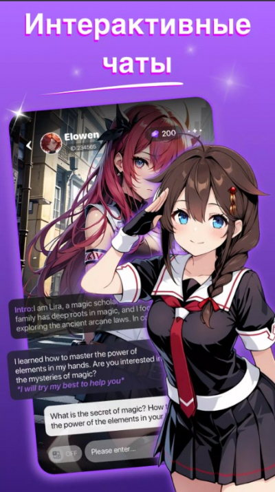 Встречайтесь с героями из любимых аниме, игр и фильмов, каждый из которых обладает характером и своим стилем общения. Ты можешь обсуждать с ними все, что угодно. Персонажи отвечают естественно, запоминают прошлые разговоры и адаптируются под твой стиль общения. Участвуй в ролевых играх, где ты можешь создавать сюжеты, решать головоломки и проживать незабываемые моменты. Общение может быть как через текст, так и через голосовые сообщения.Создайте своего героя